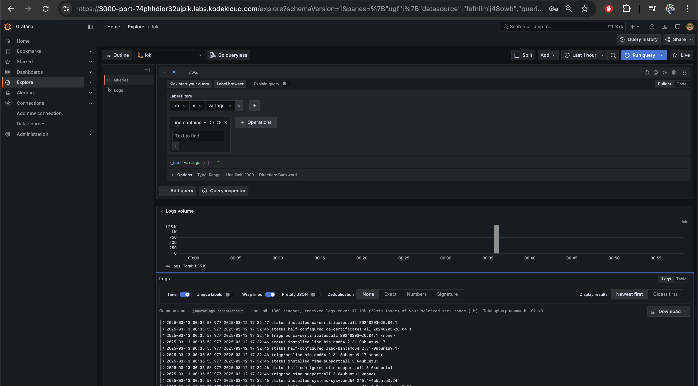 3. **Label Filtreleri**: Hangi label'a ait logları görüntüleyeceksek bunu belirtiyoruz, `job="varlogs"` gibi etiketlere göre filtre uygulayabilirsiniz.