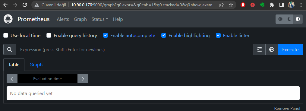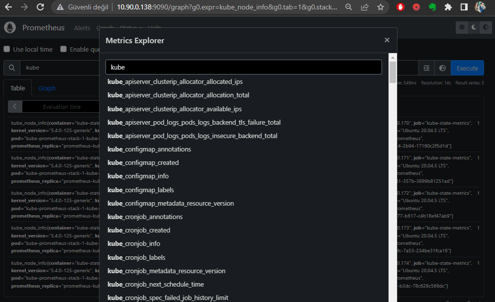 * Tarayıcınızda nodeip:9090 adresini ziyaret ederek Prometheus UI'sine erişebilirsiniz.